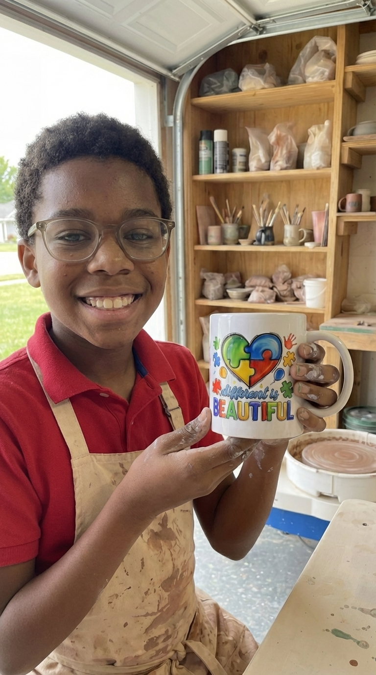 He spends hours in his small workspace, quietly shaping clay with his hands.